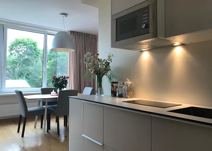 Obiekt posiada pełnowymiarową kuchnię oraz miejsce do jedzenia, w których goście mogą się zrelaksować i delektować posiłkami. Międzynarodowe lotnisko Połąga oddalone jest od 1-pokojowego apartamentu o 5 km, a dworzec Ligonine - w kilku minutach stąd. Goscie mają dostęp do słonecznego patio.